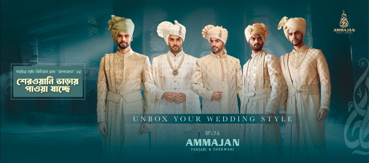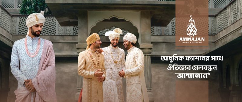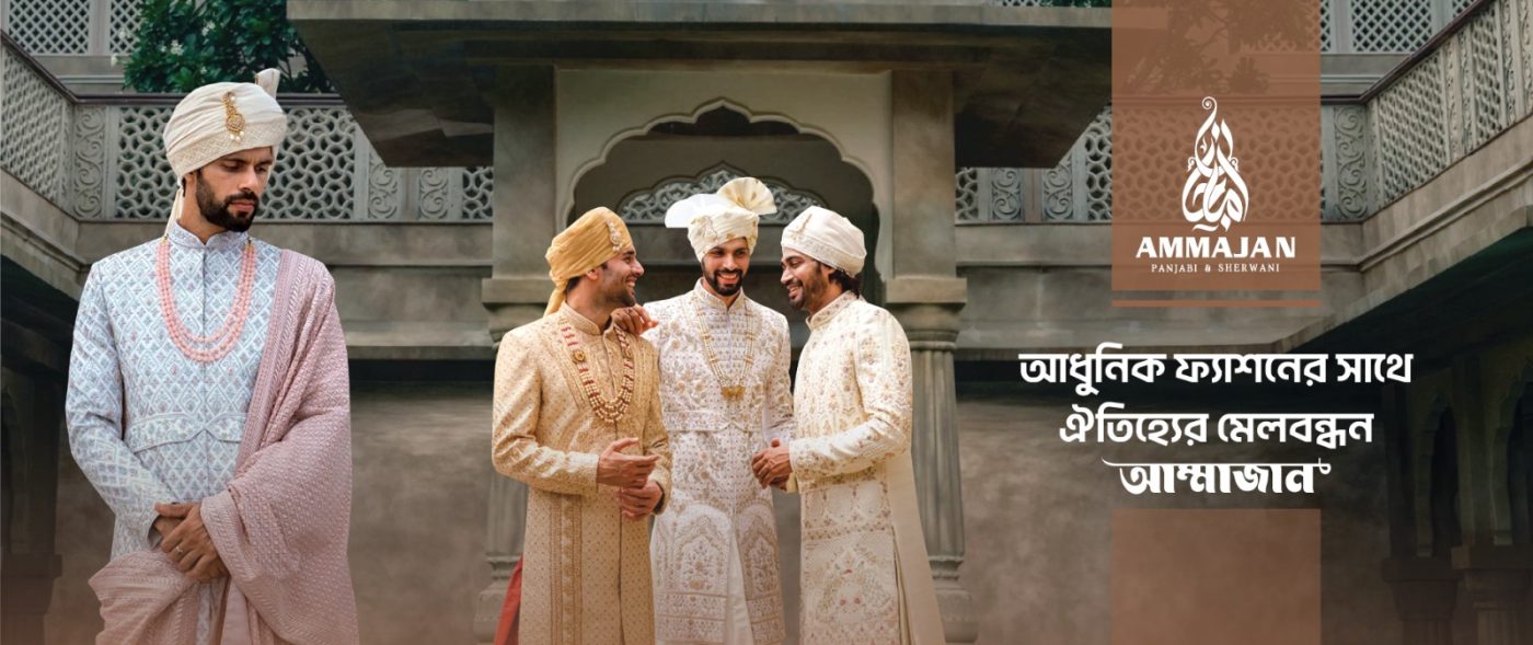 In Bangladesh, Sherwani is a popular attire which is worn by men during special occasions such as weddings, Eid festivals, and formal events. It is typically made of silk, brocade, or other luxurious fabrics, and can be decorated with intricate embroidery, sequins, or beadwork.